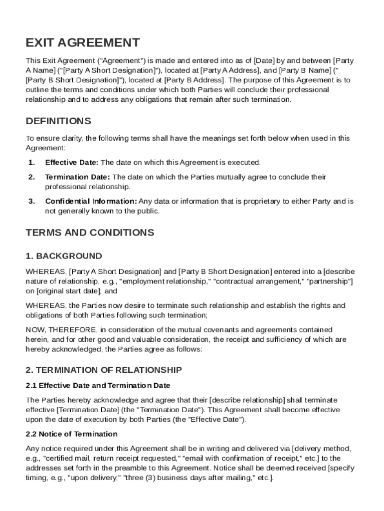 What is Exit Agreement Template