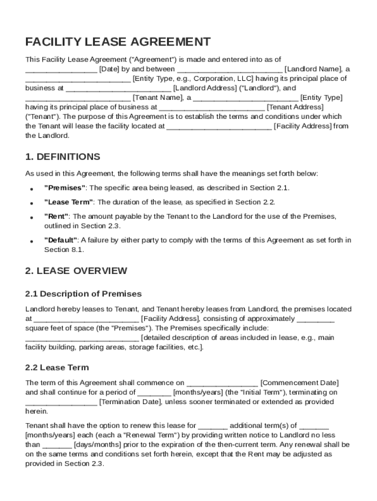 Facility Lease Agreement Template Guide