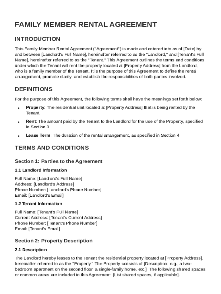 A Family Member Rental Agreement Template is a legal document that outlines the terms and conditions under which a family member can rent a property from another family member.