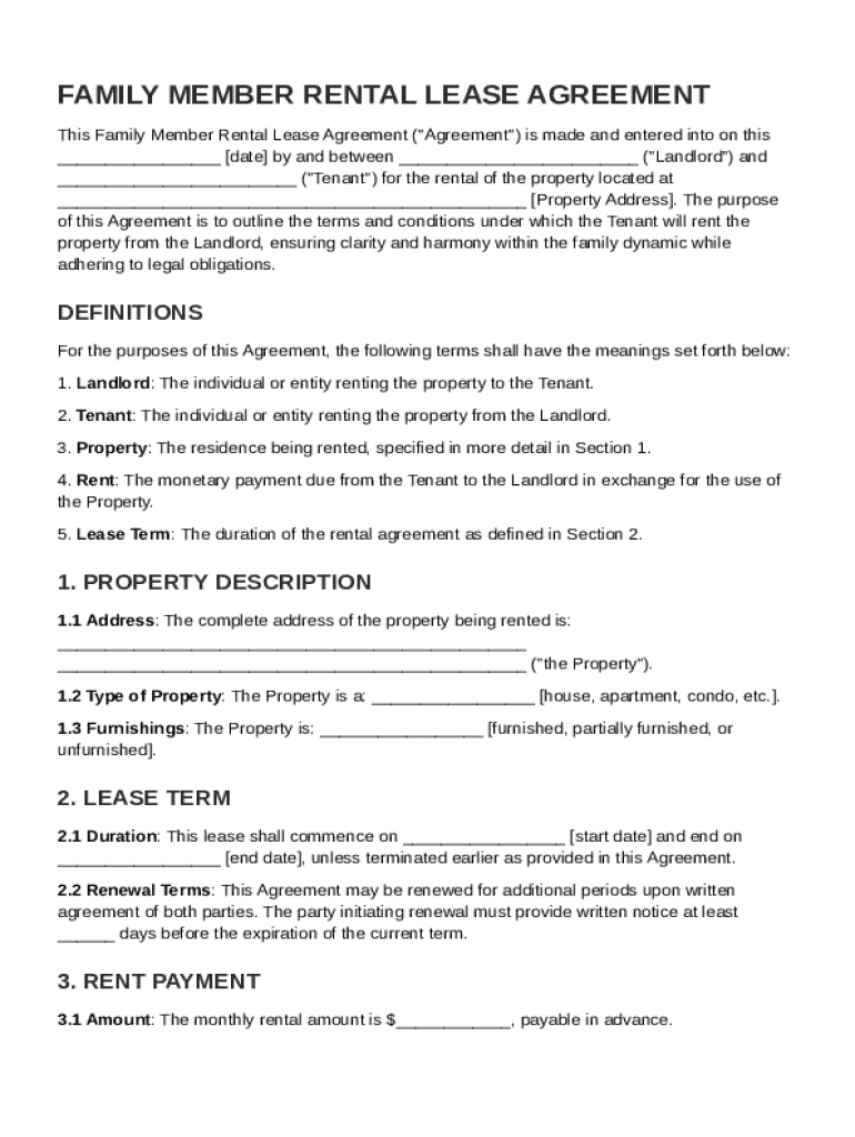 What is Family Member Rental Lease Agreement Template