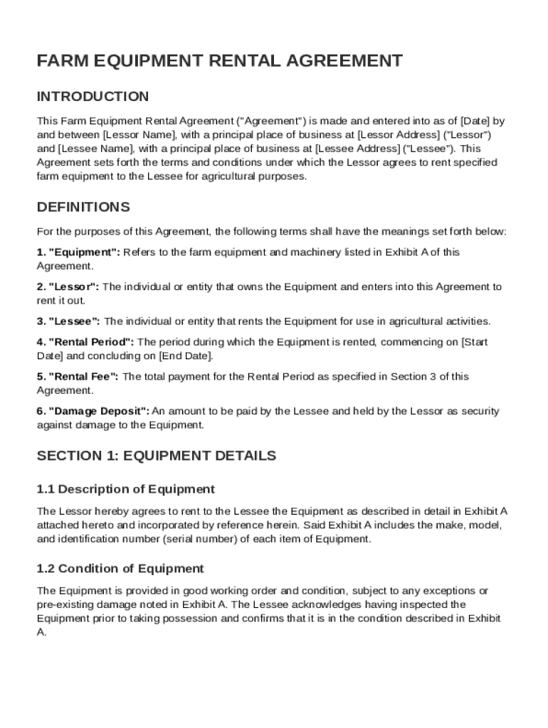 A comprehensive guide to the Farm Equipment Rental Agreement Template form