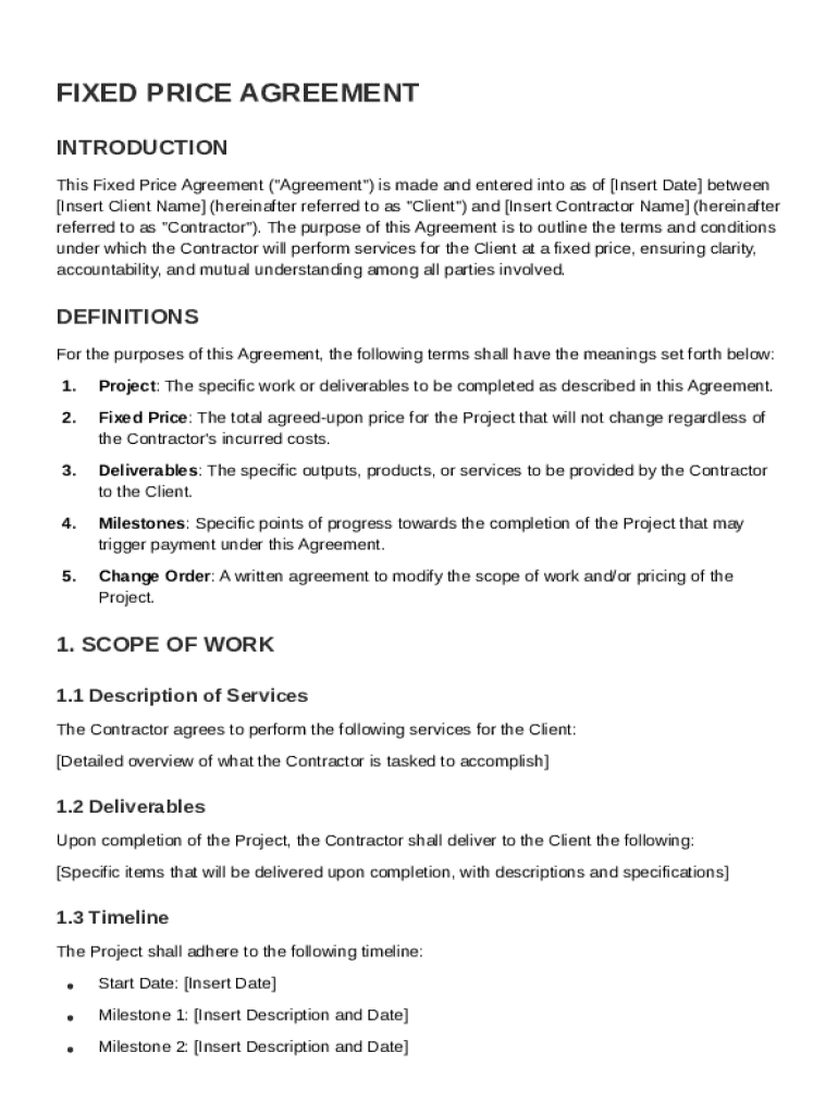 Comprehensive Guide to the Fixed Price Agreement Template Form