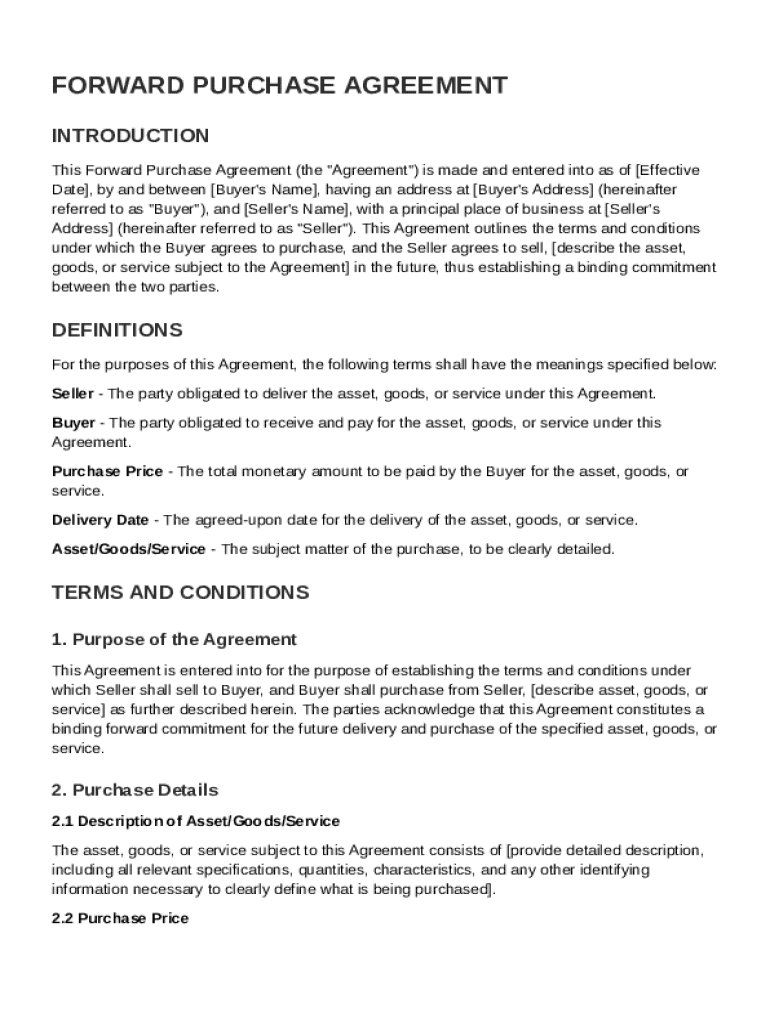 Comprehensive Guide to Forward Purchase Agreement Template