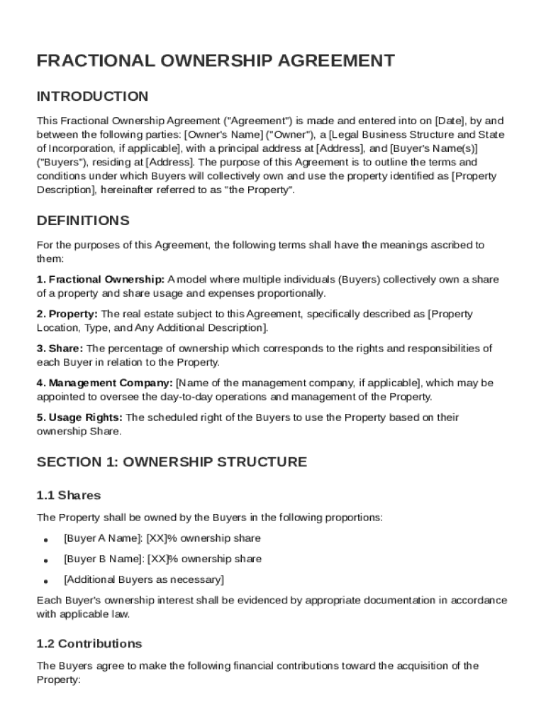 What is Fractional Ownership Agreement Template