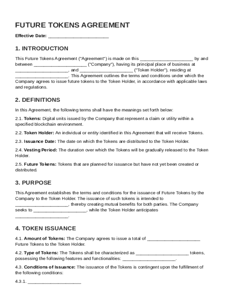 What is Future Tokens Agreement Template