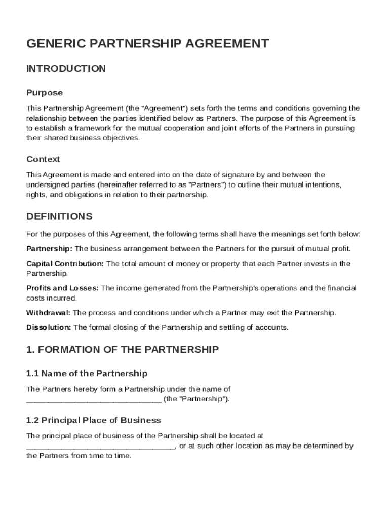 What is Generic Partnership Agreement Template