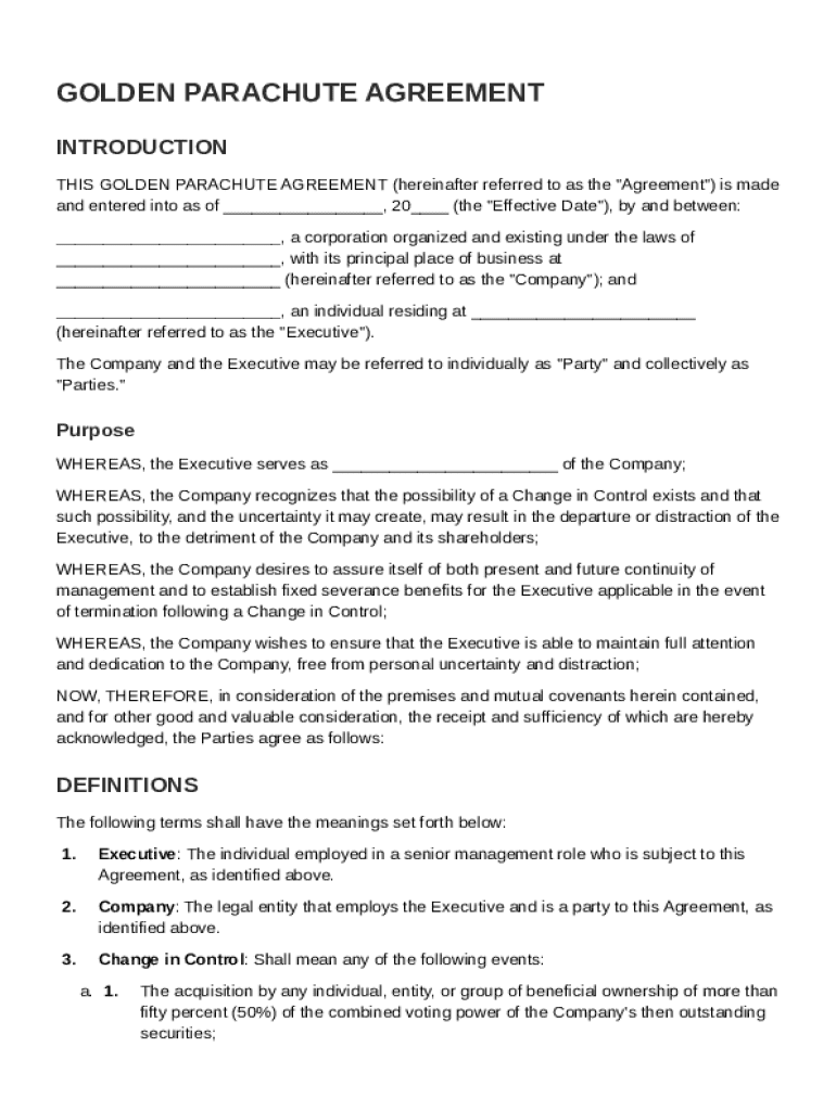 What is Golden Parachute Agreement Template