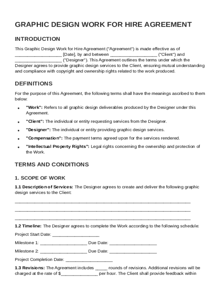 This guide provides an overview of the Graphic Design Work for Hire Agreement Template, outlining how to effectively fill it out for your specific needs.