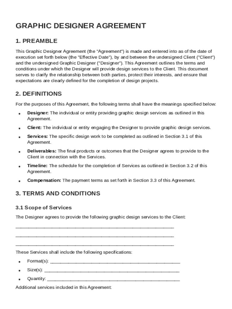 This document outlines the terms and conditions for the provision of graphic design services between the Client and the Designer.