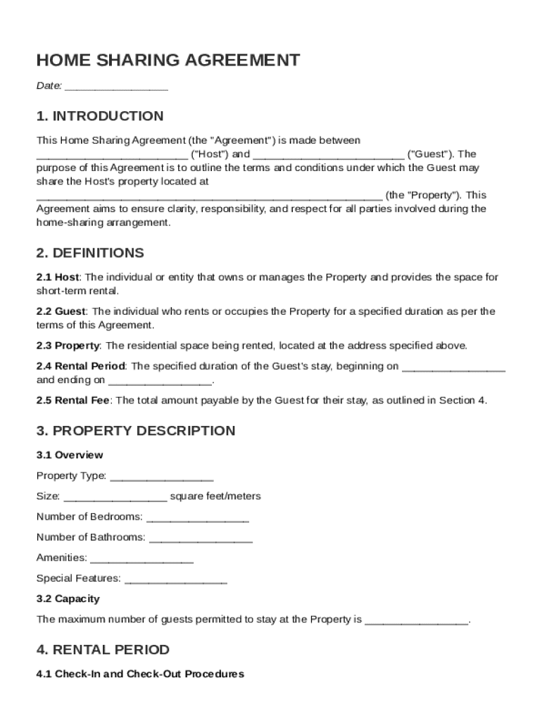 A home sharing agreement is a document that lays down the terms and conditions between hosts and guests participating in home sharing arrangements. Understanding its importance cannot be overstated; it not only protects the rights of both parties but also clarifies their responsibilities. Failing to establish a formal agreement may lead to disputes, misunderstandings, and potential legal issues.