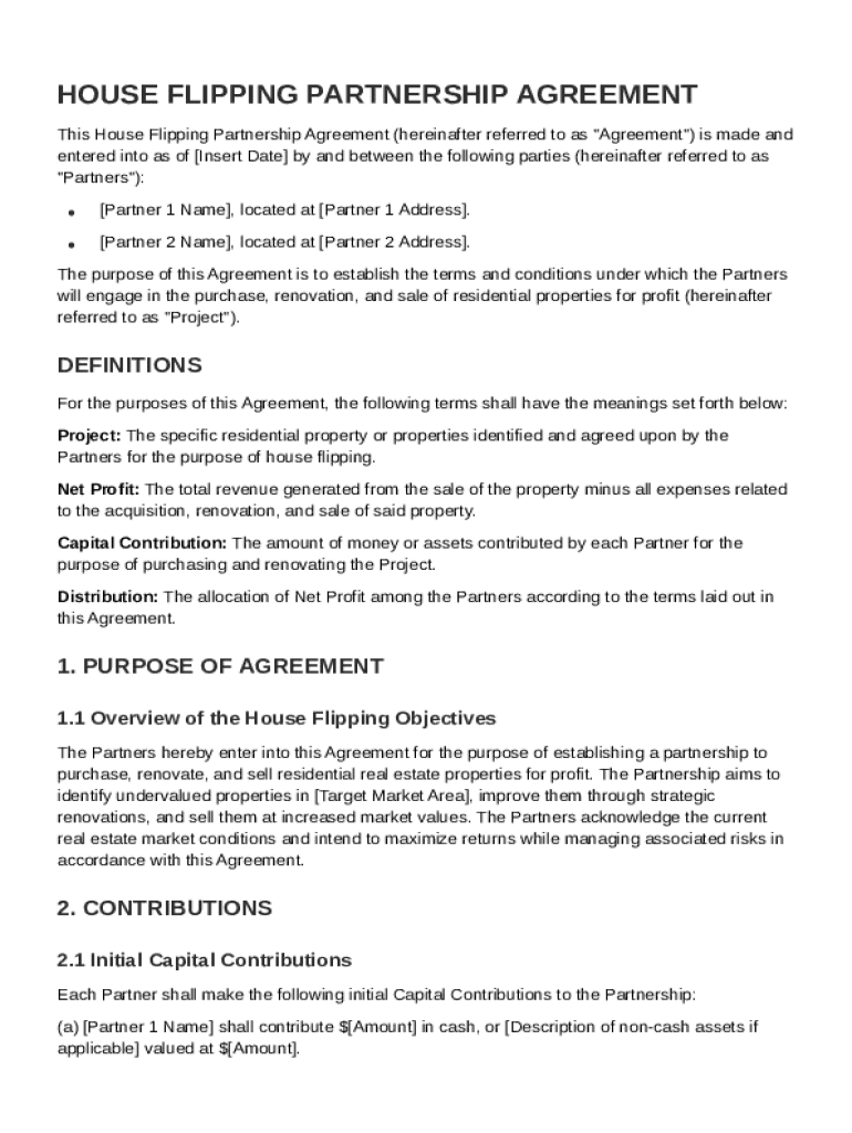 What is House Flipping Partnership Agreement Template