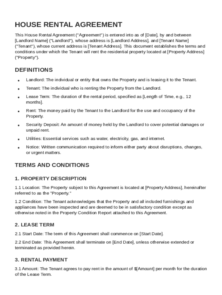 A house rental agreement is a legally binding document that outlines the terms of renting a property. Its purpose is to protect the interests of both the landlord and tenant, ensuring that responsibilities and rights are clearly defined. Typically, this agreement is signed before the start of a lease to formalize the rental arrangement.