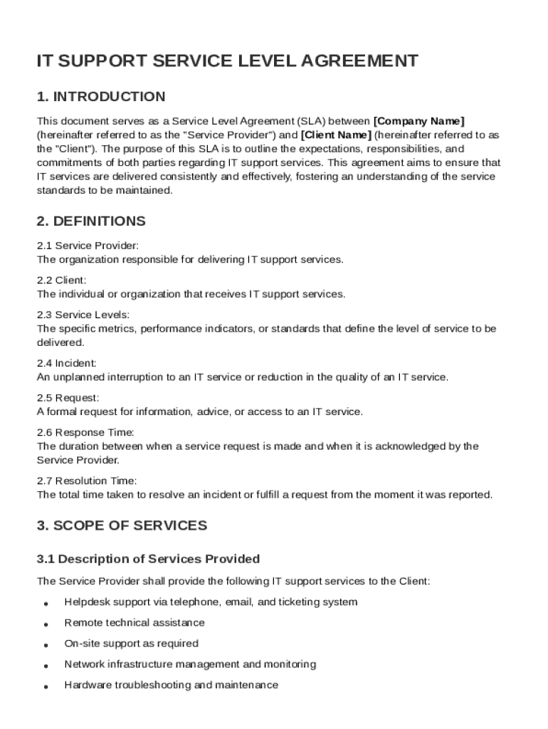 What is IT Support Service Level Agreement Template