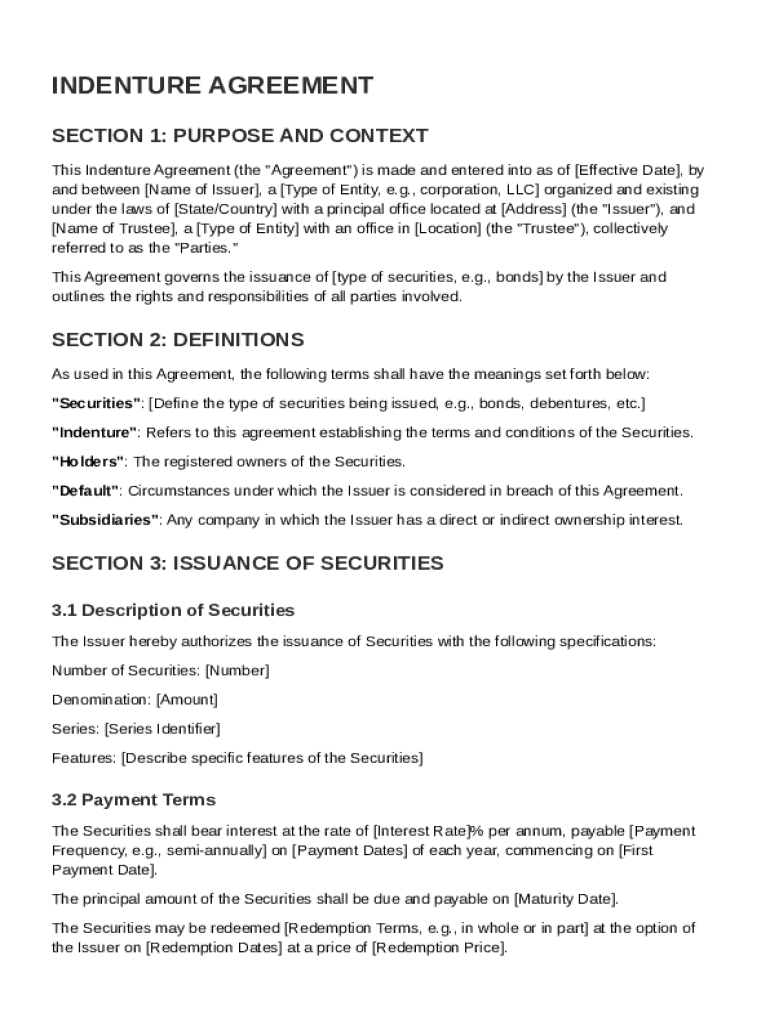 What is Indenture Agreement Template