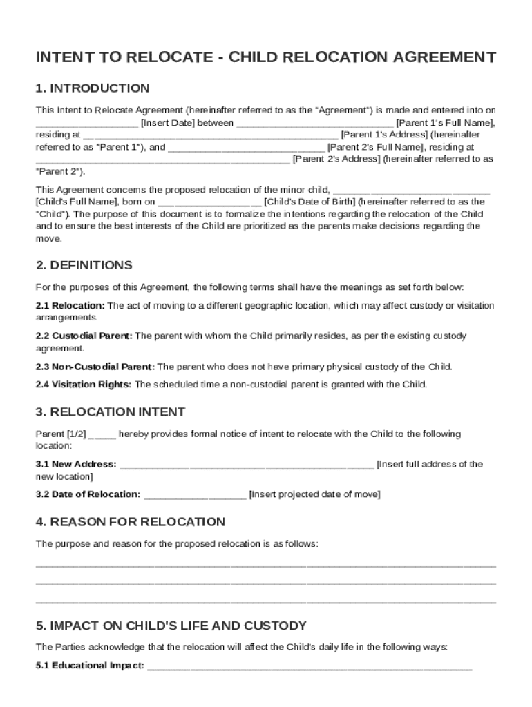 This document is intended to formalize the intentions regarding the relocation of a minor child, ensuring consideration of the child\'s best interests as the parents make decisions about the move.