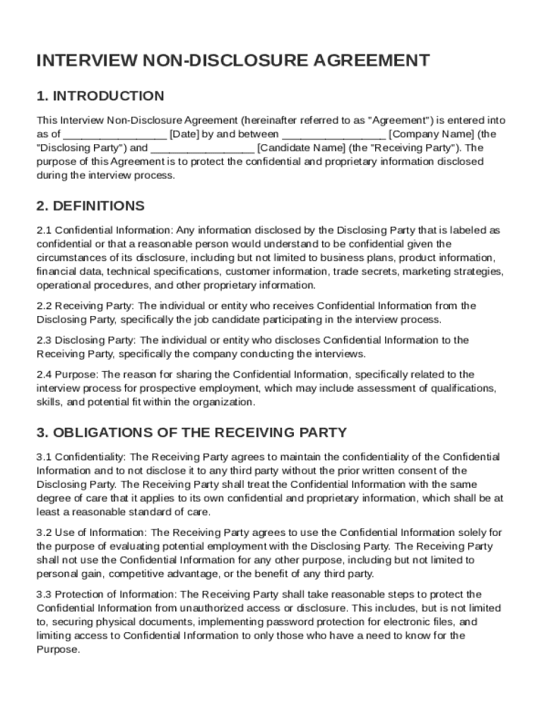A comprehensive guide to drafting an Interview Non Disclosure Agreement template form