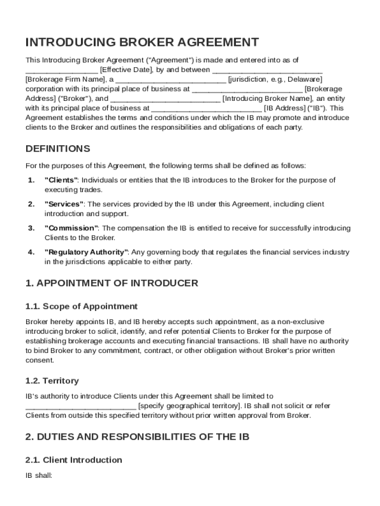 The following information aims to assist you in understanding and utilizing the Introducing Broker Agreement Template effectively.