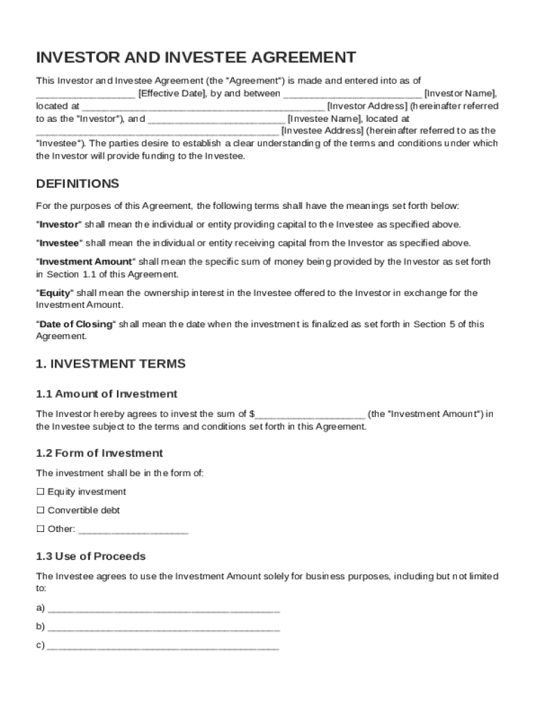 Comprehensive Guide to the Investor and Investee Agreement Template