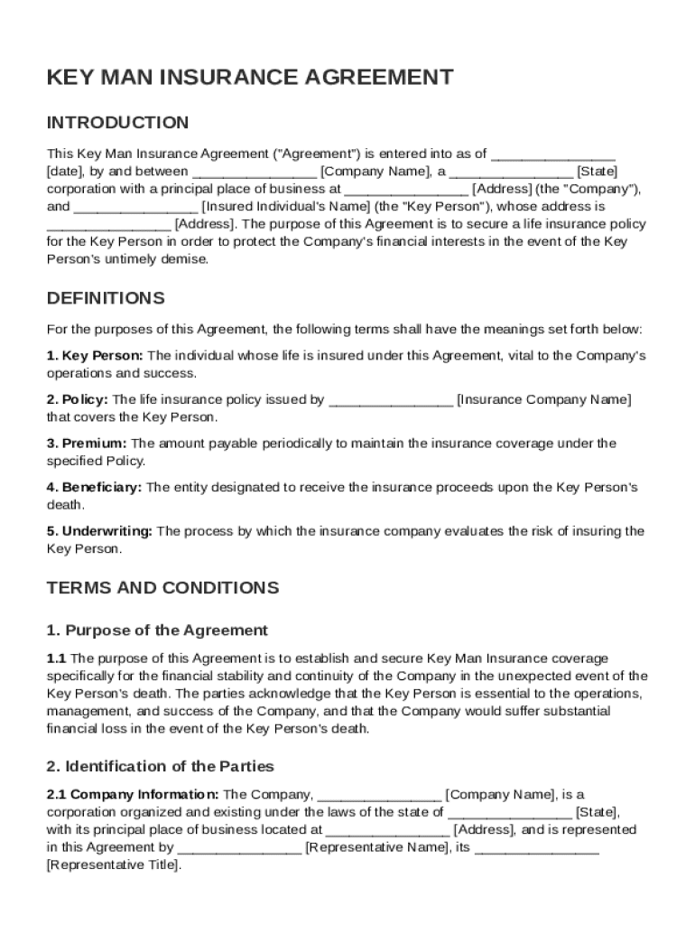 Key Man Insurance is a vital component for many businesses, ensuring protection against the loss of critical personnel. To fill out a Key Man Insurance Agreement Template form, start by understanding the key components required and the specific needs of your organization.