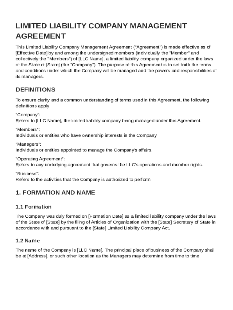An LLC Management Agreement Template is a document outlining the management structure and operational guidelines for a Limited Liability Company (LLC).