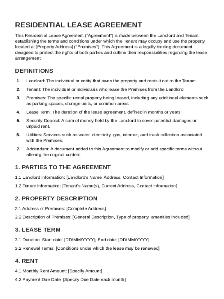 A comprehensive residential lease agreement includes several essential details to protect both the landlord's and tenant's interests.