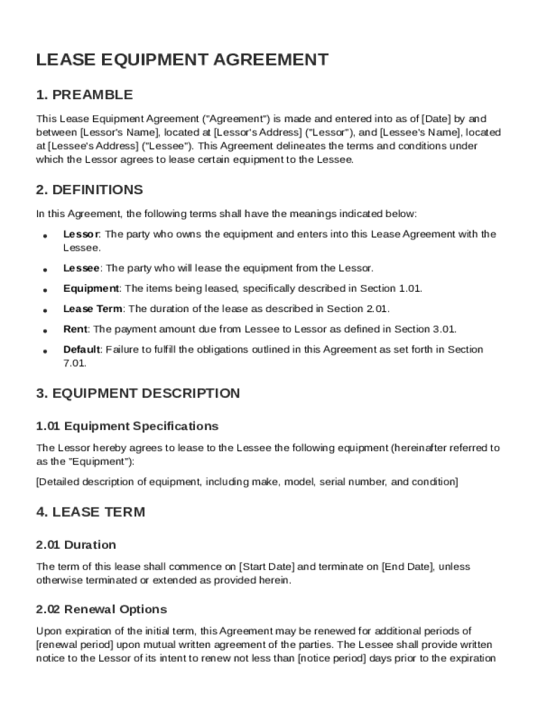 Definition and key provisions of a Lease Equipment Agreement Template