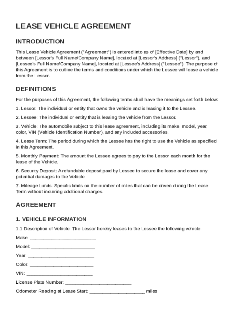 Understanding the key components of a Lease Vehicle Agreement ensures that both parties' interests are well represented.