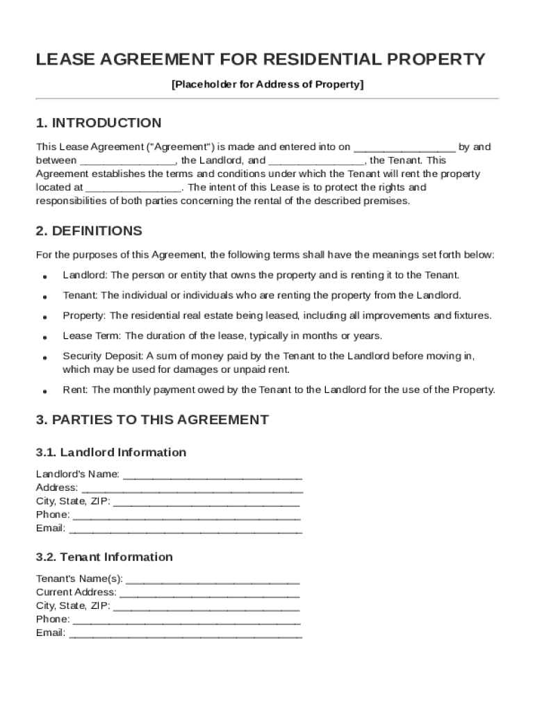 This Lease Agreement establishes the terms and conditions under which the Tenant will rent the property from the Landlord, outlining rights, responsibilities, rent payments, and other related aspects.