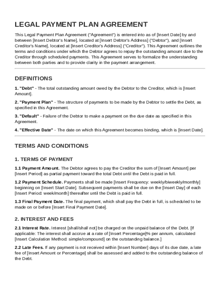 Comprehensive Guide to Legal Payment Plan Agreement Template on pdfFiller