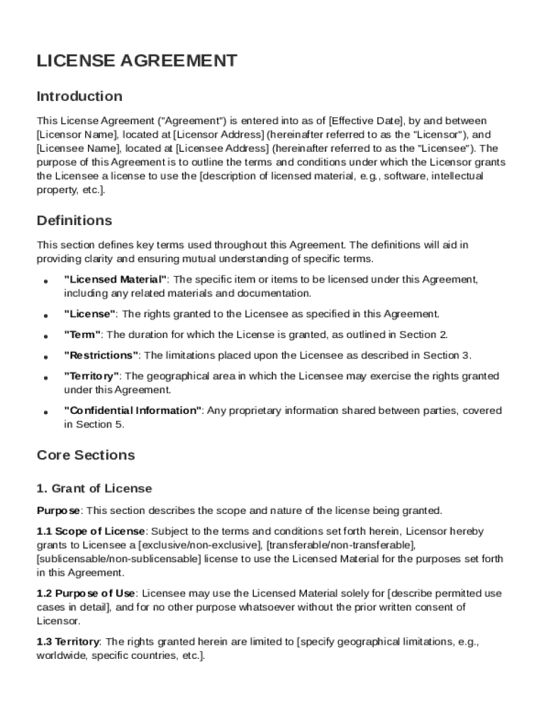 Filling out a license agreement accurately is essential for its legal validity. This section highlights the critical areas that need careful attention.