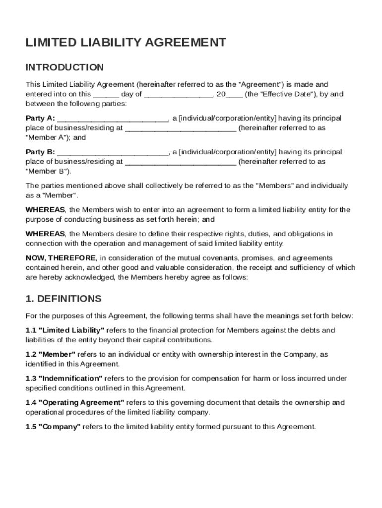 Complete Guide to Limited Liability Agreement Template Form