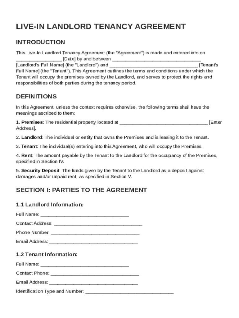 What is Live in Landlord Tenancy Agreement Template