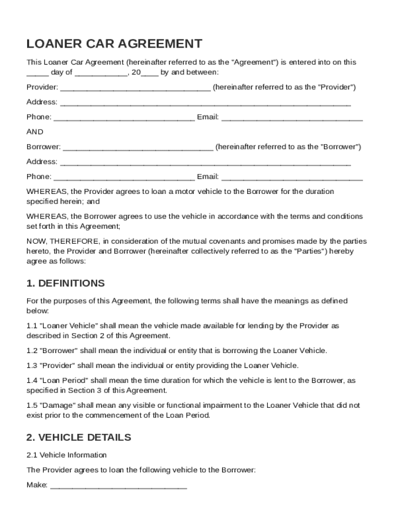 A Loaner Car Agreement is a legal contract that outlines the terms under which a vehicle is provided to a borrower temporarily. This agreement is crucial in ensuring that both the provider and the borrower are clear about their rights and responsibilities during the loan period. It safeguards the interests of both parties, reducing the likelihood of disputes.