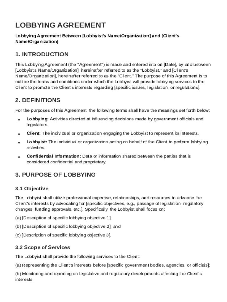 Gain a comprehensive understanding of the Lobbying Agreement Template and its significance in your lobbying efforts.