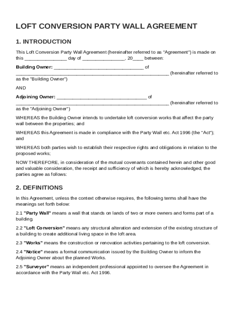 What is Loft Conversion Party Wall Agreement Template
