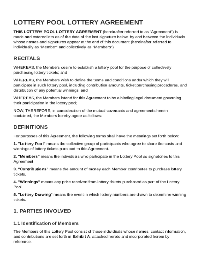 What is Lottery Pool Lottery Agreement Template