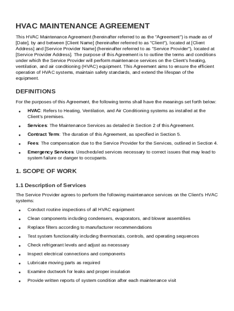What is Maintenance HVAC Agreement Template