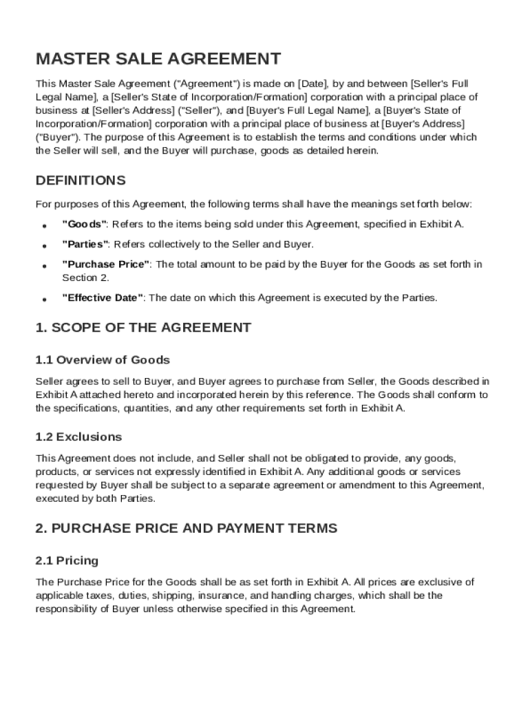 This guide provides a comprehensive overview of the Master Sale Agreement Template form, detailing how to effectively complete and utilize it.