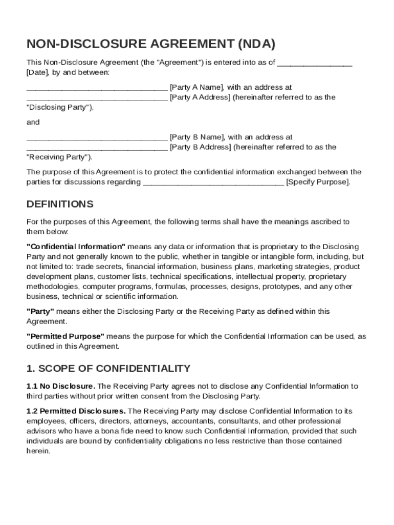 A Non-Disclosure Agreement (NDA) is a legally binding contract that establishes a confidential relationship between parties. NDAs are crucial for protecting sensitive information, allowing businesses and individuals to share proprietary knowledge without fear of exposure.