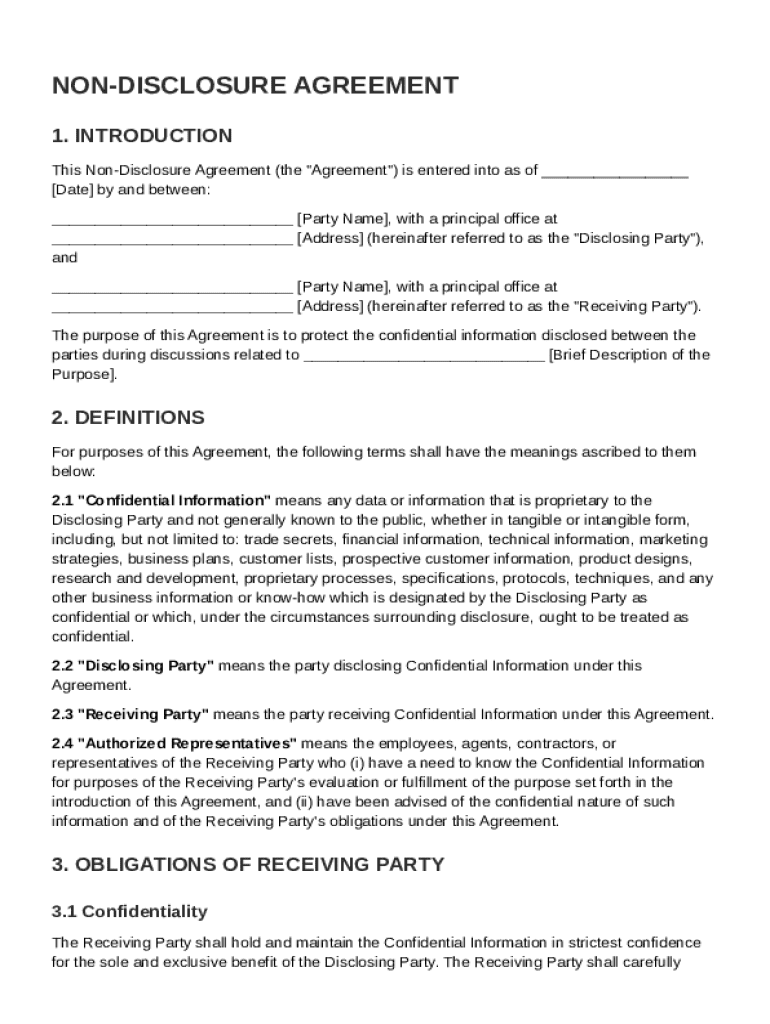 Key sections often included in an NDA Non Disclosure Agreement Template are: