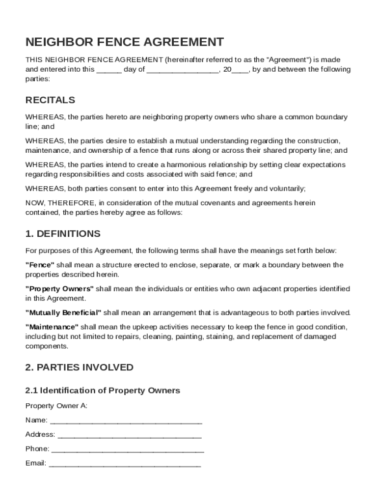 This section provides you with essential insights and detailed information regarding the Neighbor Fence Agreement Template, helping you understand its significance and use.