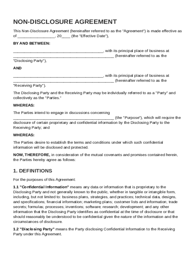 A Non-Disclosure Agreement (NDA) is a legal contract designed to protect confidential information shared between parties. NDAs are pivotal in safeguarding sensitive data, including trade secrets, business strategies, and proprietary technology. They are particularly important in situations where two or more parties are discussing or engaging in business activities together.