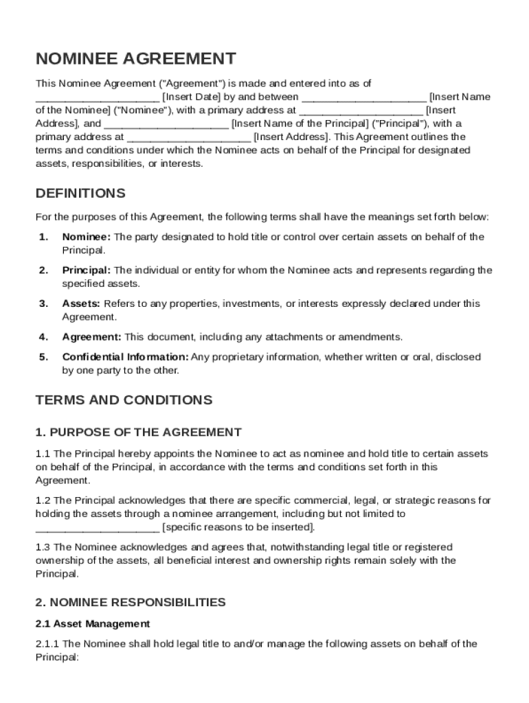 What is Nominee Agreement Template