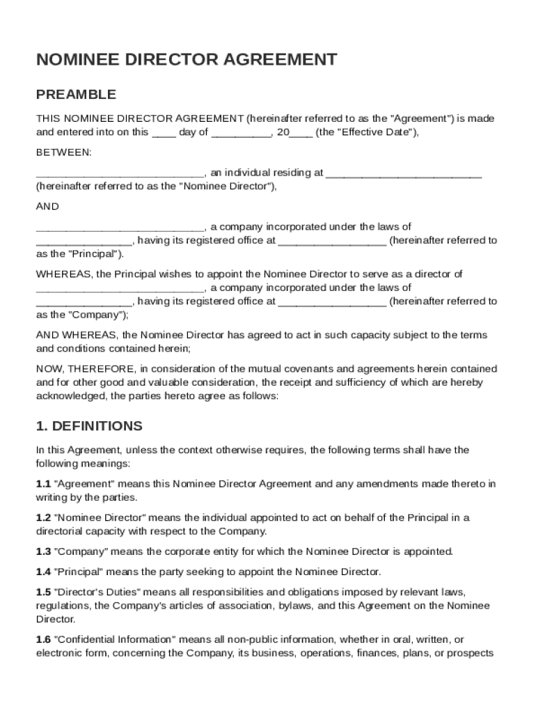 What is Nominee Director Agreement Template