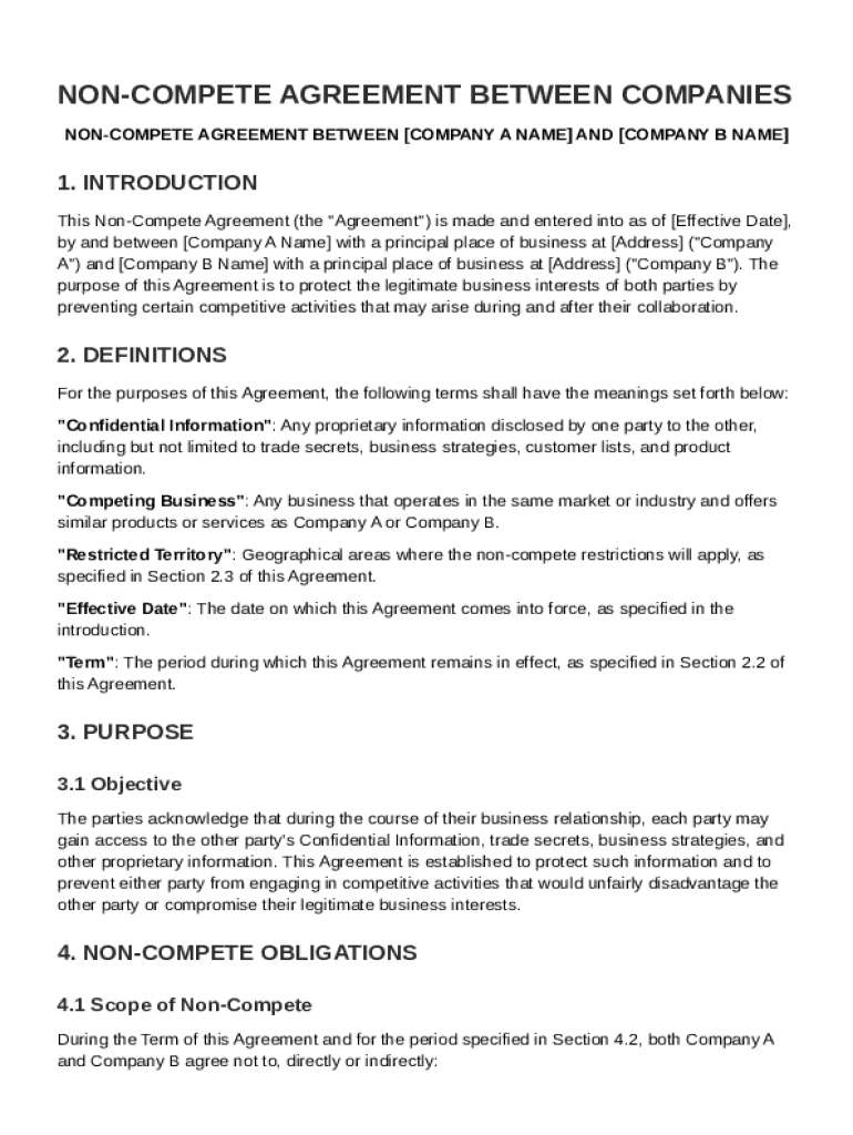 What is Non Compete Between Companies Agreement Template