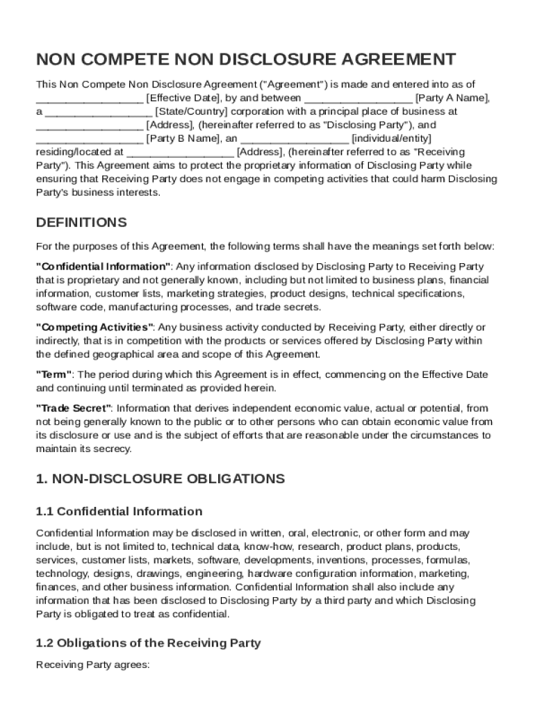A Non Compete Non Disclosure Agreement Template is a legal document designed to protect confidential information and restrict parties from engaging in competitive activities post-employment or contract.
