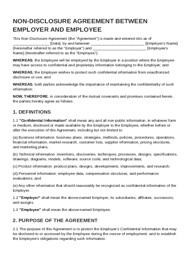 A Non-Disclosure Agreement (NDA) is a legally binding contract that protects confidential information shared between an employer and an employee. These agreements are crucial in safeguarding sensitive data such as trade secrets, business plans, and proprietary processes. NDAs establish a relationship of trust and accountability between the parties involved, ensuring that essential information remains secure.