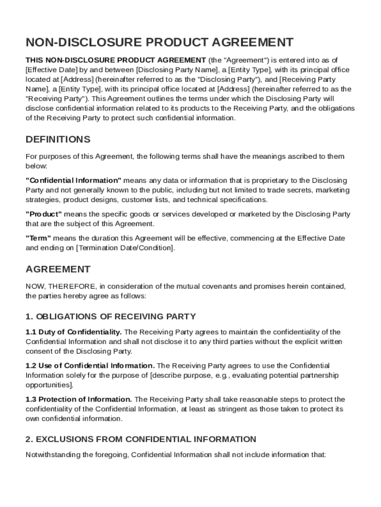 Comprehensive Guide to the Non-Disclosure Product Agreement Template