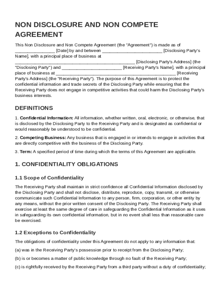 Comprehensive guide to Non-Disclosure and Non-Compete Agreement form