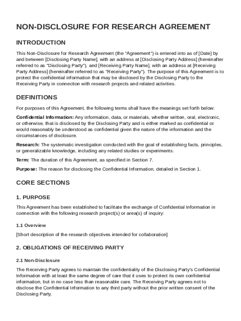 Non Disclosure for Research Agreement Guide